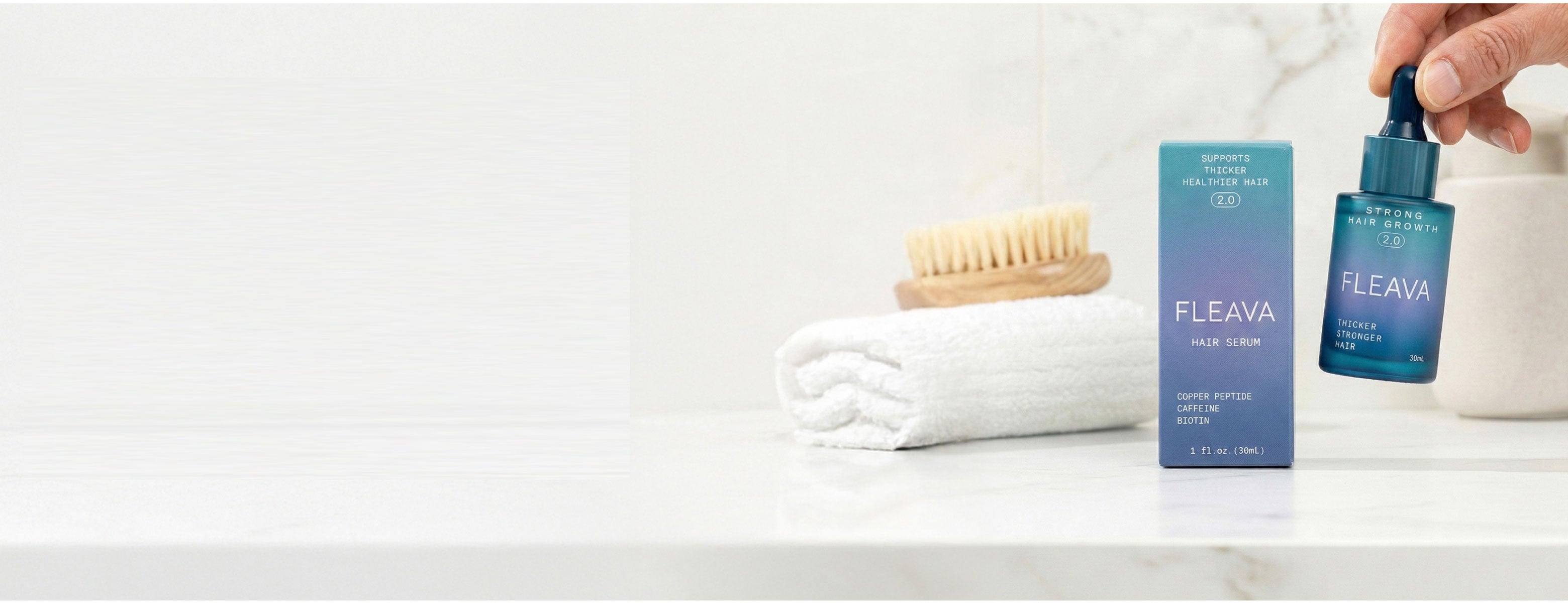 Fleava strengthens hair roots and reduces inflammation. You'll notice less hair in the shower drain as follicles grip strands more firmly.